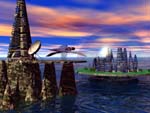 | I continued the sci-fi theme with this scene and am pleased with the way it turned out. A lot of detail was put into the remote city with the trees etc.07/22/98 |