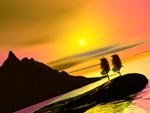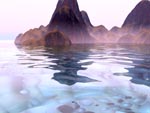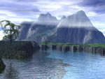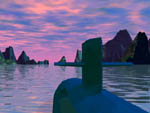 | I like the how this one turned out with the green fertile coastline and the dark, mysterious fortress beyond the coast line. I want to incorporate more objects into my scenes down the road.03/04/98 |