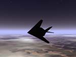 | I think this is my favorite. I have been fascinated by the F-117 Nighthawk stealth aircraft which I stumbled across on the net and voila. I gave it a high-altitude position and drew the stars in by free-hand because finding the specs on this aircraft is difficult (so I guessed its maximum envelope).07/10/97 |
